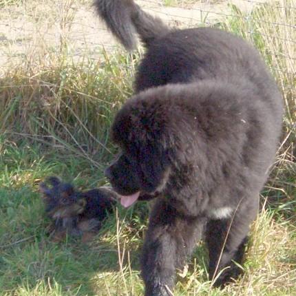 Welpenspielen: Yorkshire Terrier trifft Neufundländer